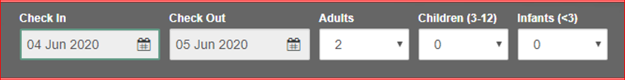 Step 1. Enter your Check In & Check Out dates & Guest Numbers at the top